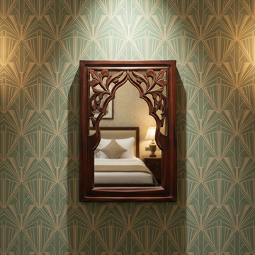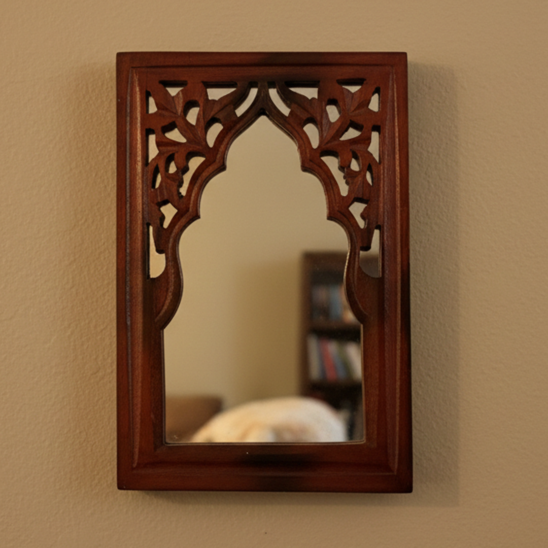 Brown MDF Wooden Mughal Jharokha with Mirror