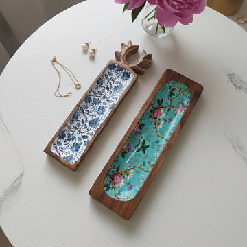 Wooden Teal Serving Tray
