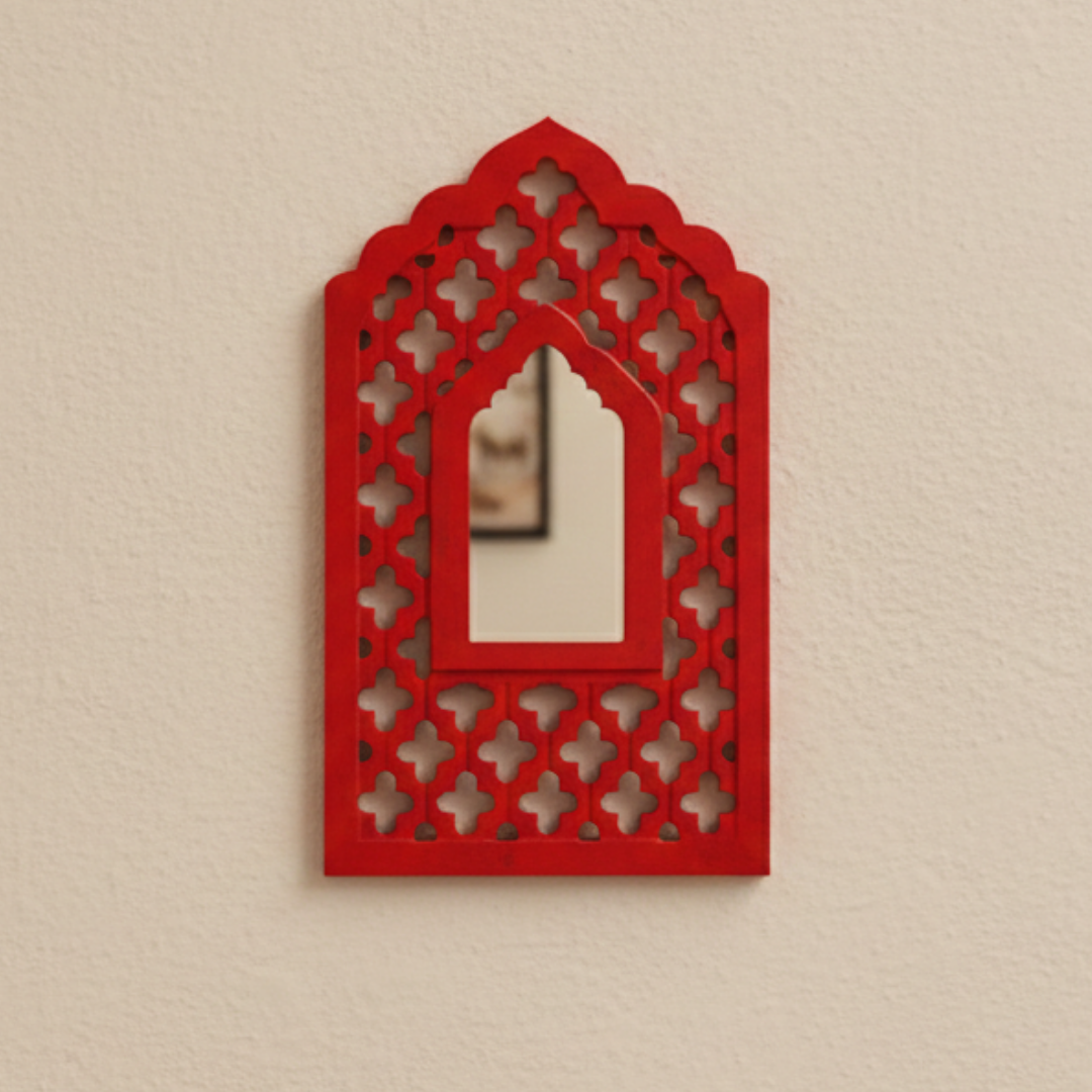 Red MDF Wooden Mughal Jharokha with Mirror (Red Mughal)