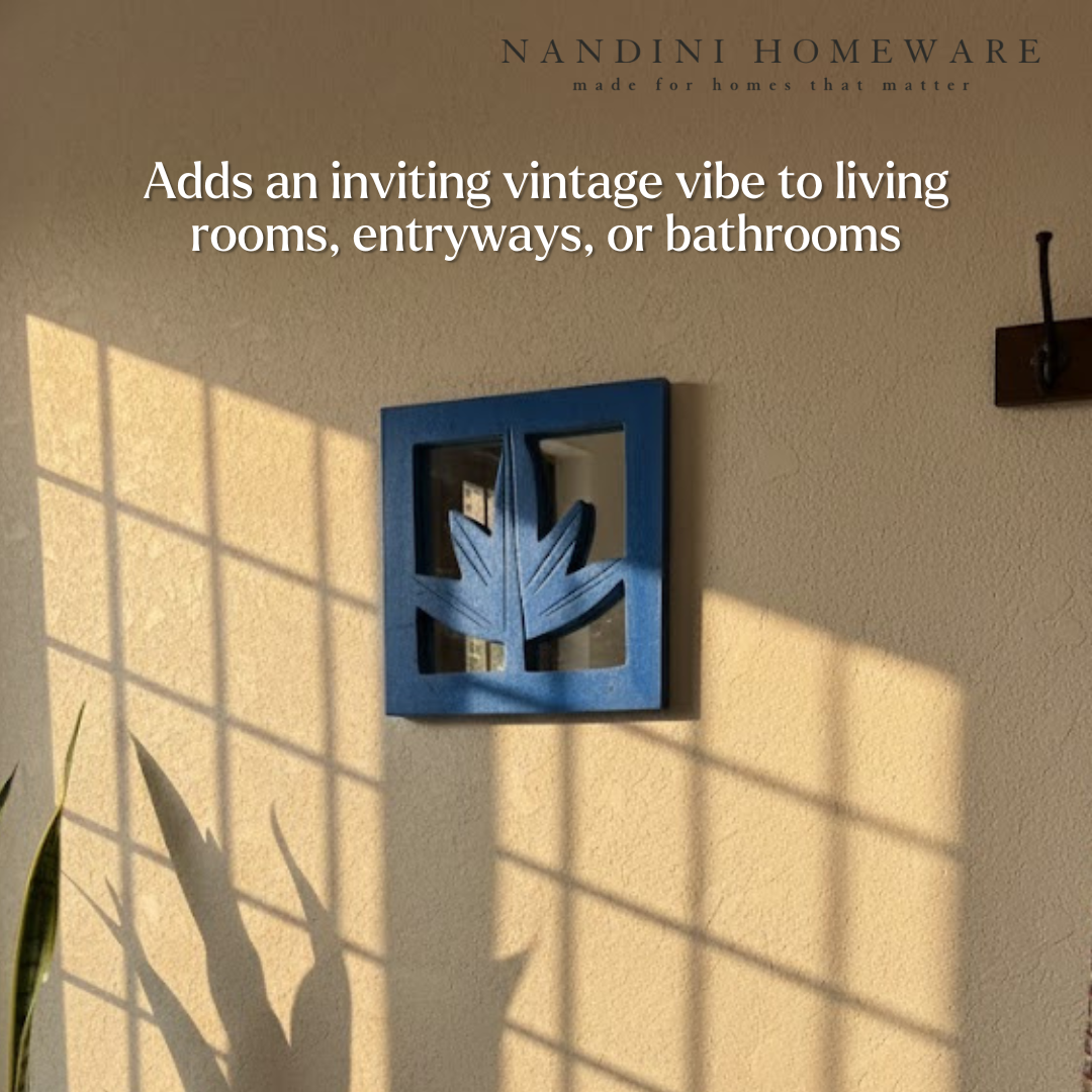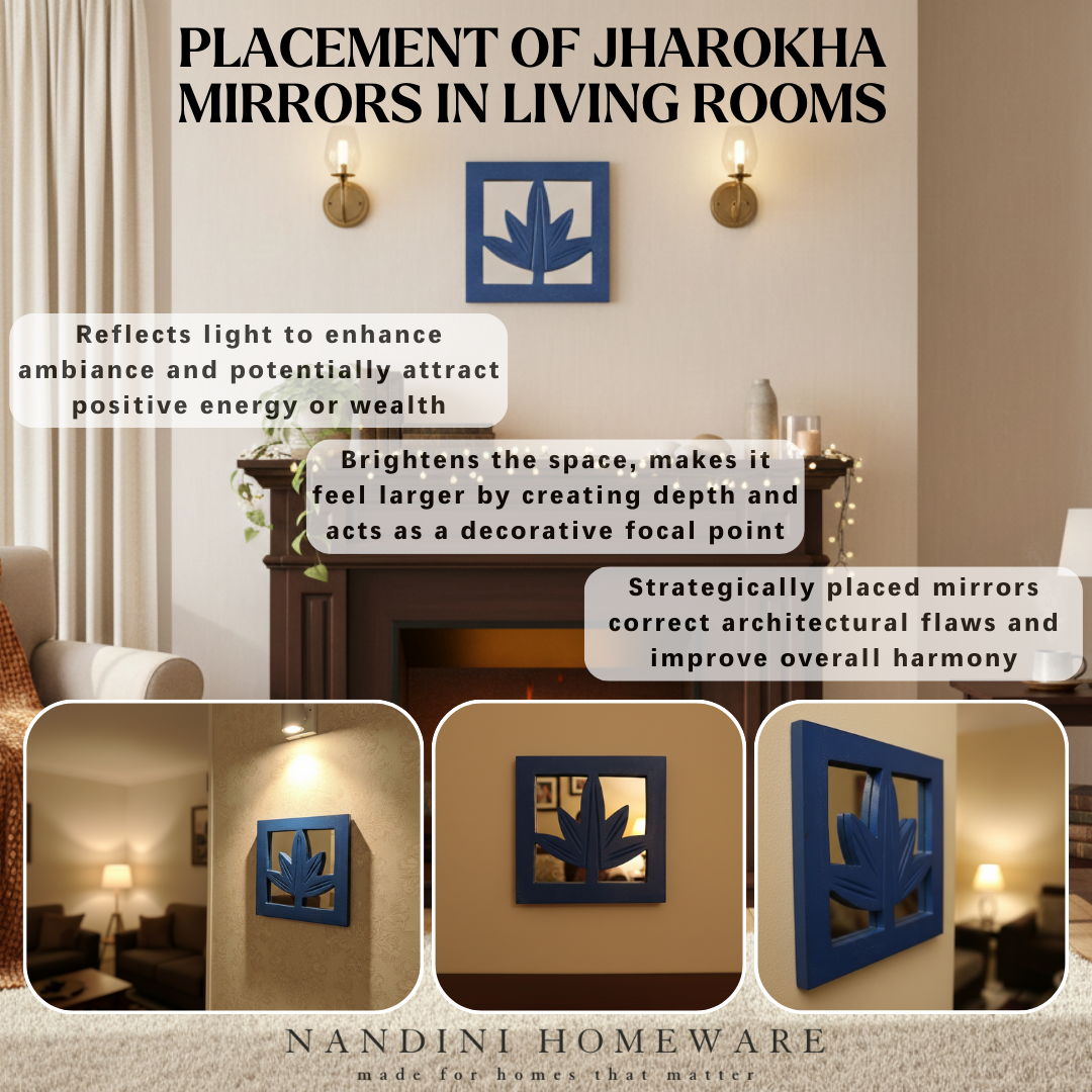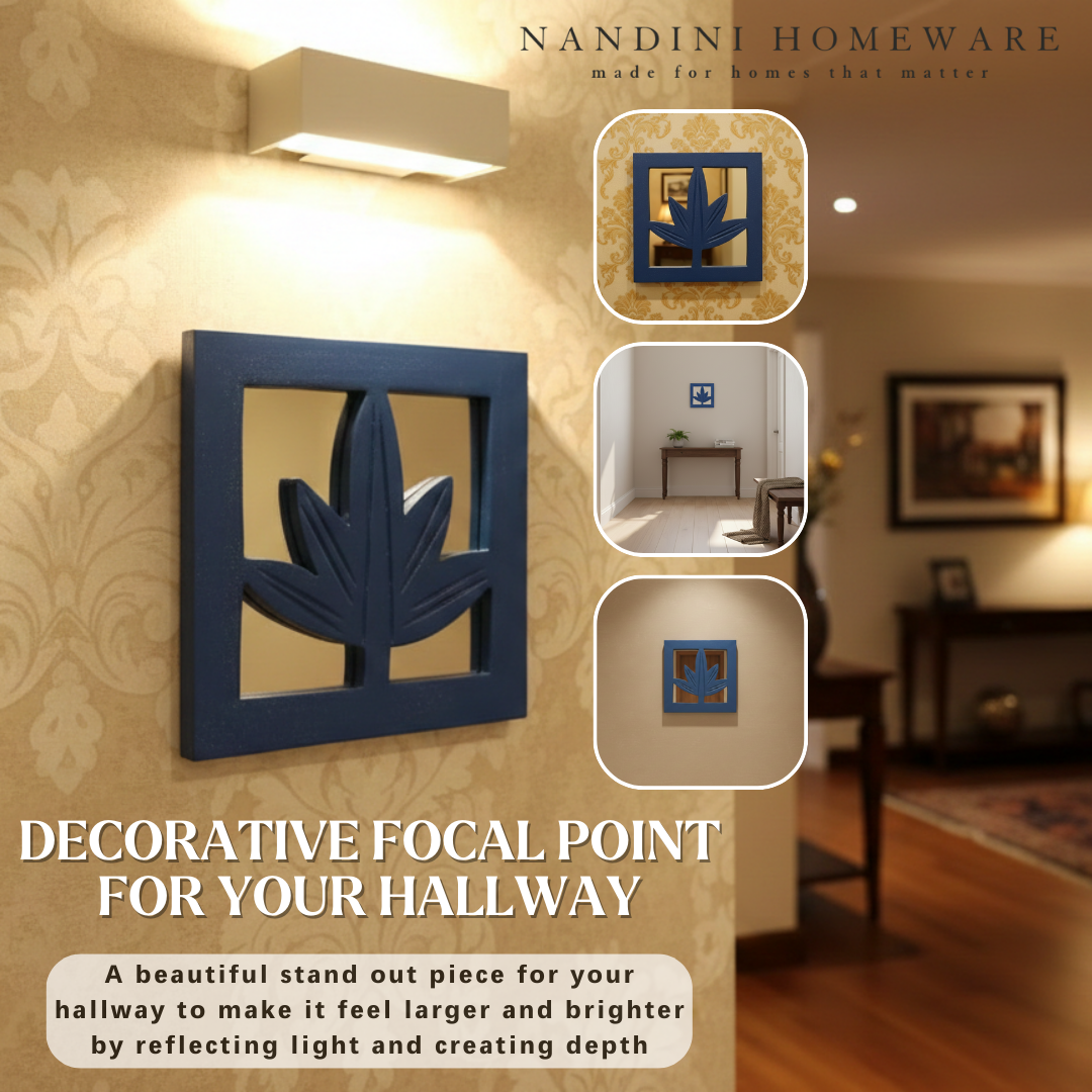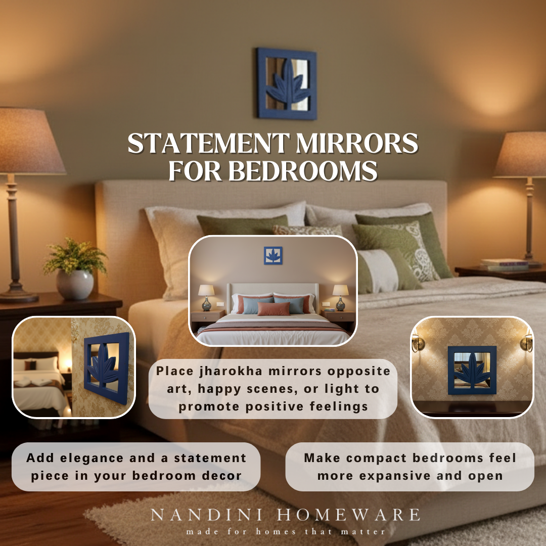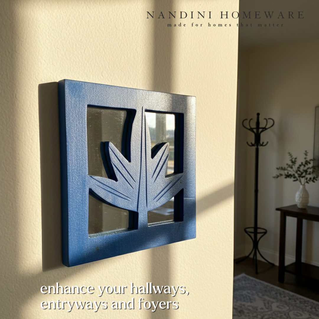 Crafted with precision, the Blue Leaf Jharokha with Mirror combines traditional artistry and functional design. This elegant wooden jharokha features intricate carving and a built-in mirror, making it ideal for adding a refined decorative accent to your living space while serving as a practical mirror. Its durable construction ensures lasting beauty, enhancing both classic and contemporary interiors with a touch of heritage sophistication.
