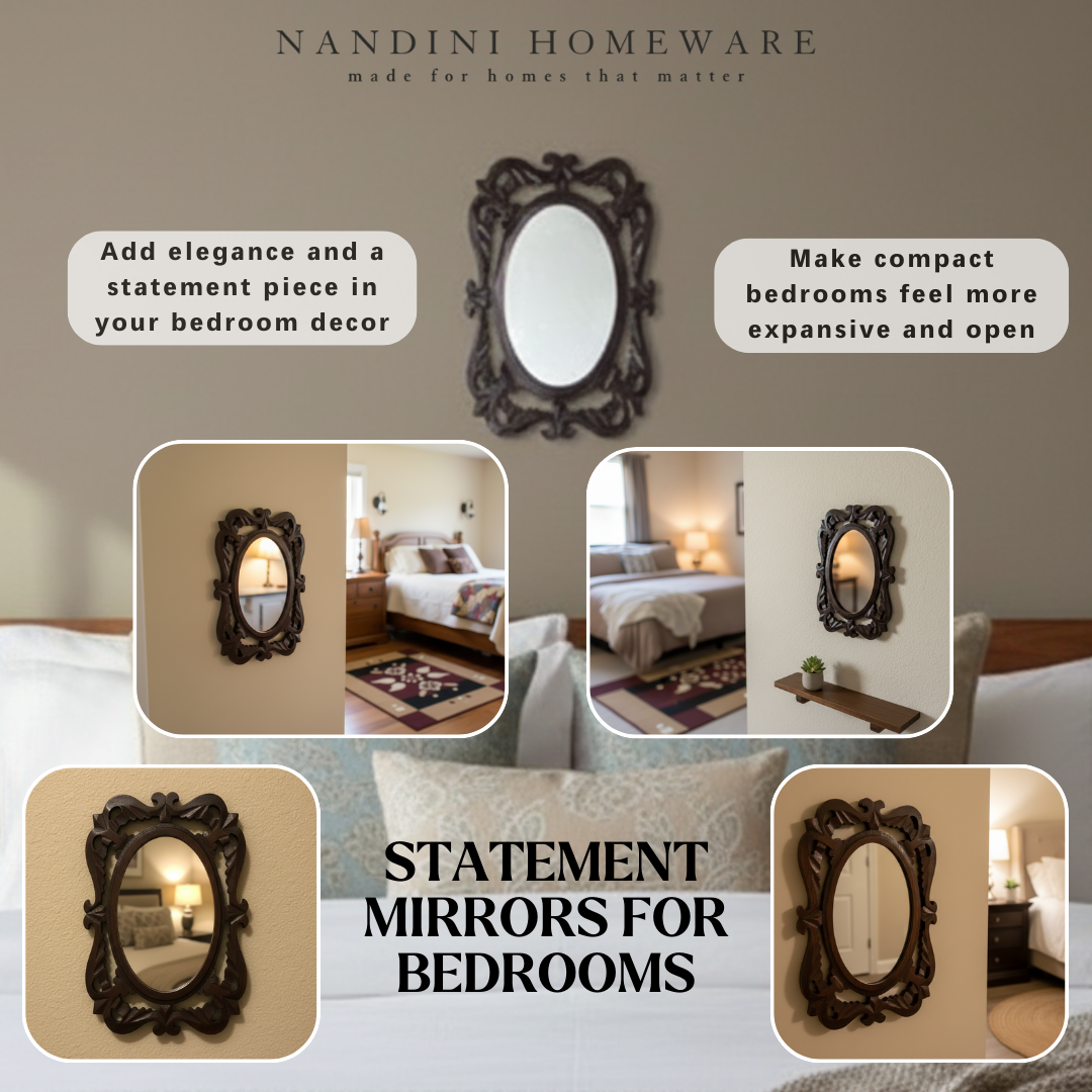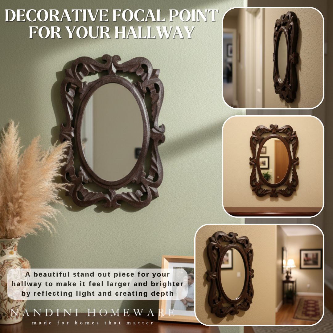 Brown MDF Wooden Antique Mirror Jharokha (Brown Mirror)