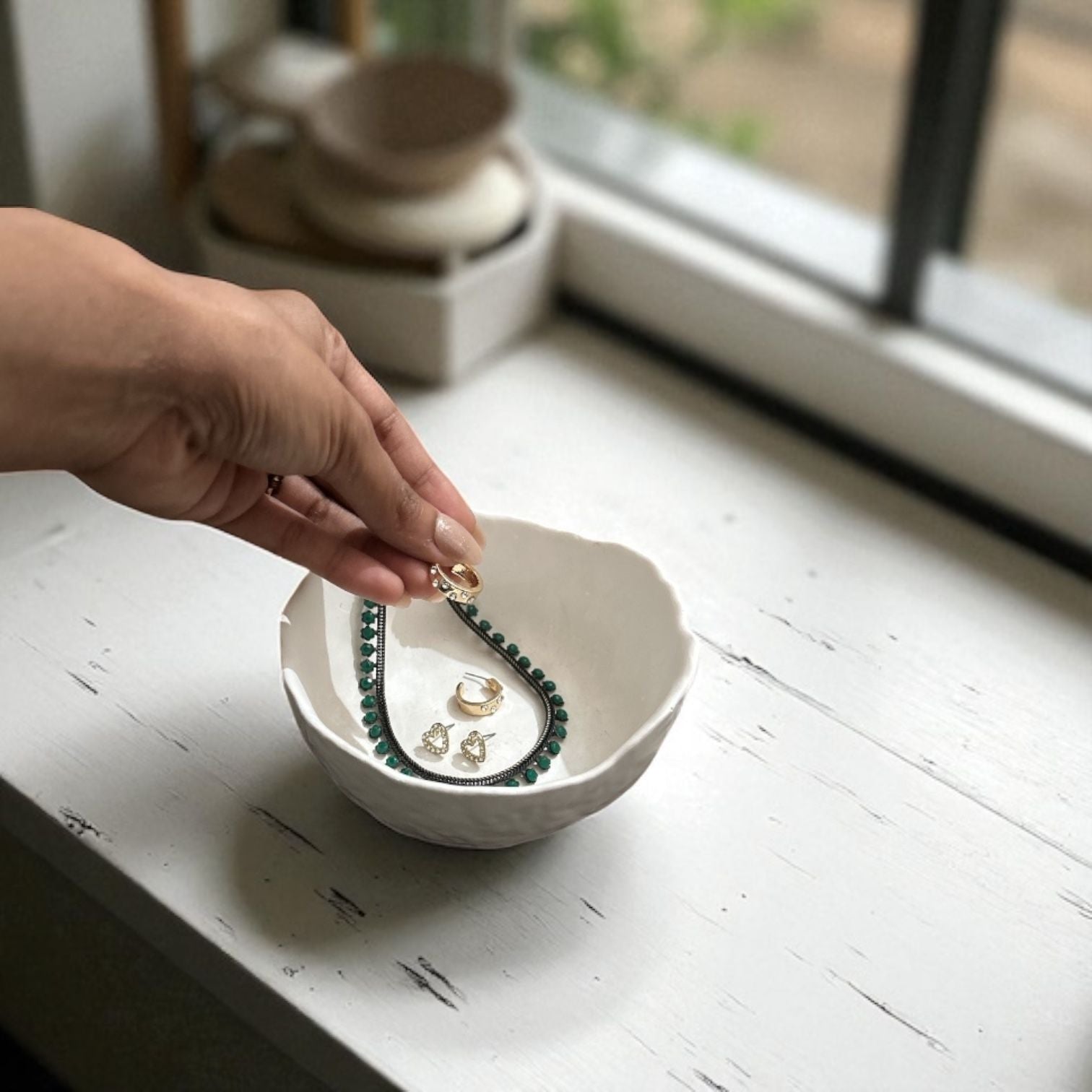 Versatility: Our bowl is perfect for organizing jewelry, bracelets, trinkets, rings, earrings, crystals, and more. It can be used as a jewellery holder, trinket holder, or decorative tray, bringing both function and beauty to your living space. It also works wonderfully as a minimalistic candle jar for a cozy setup.