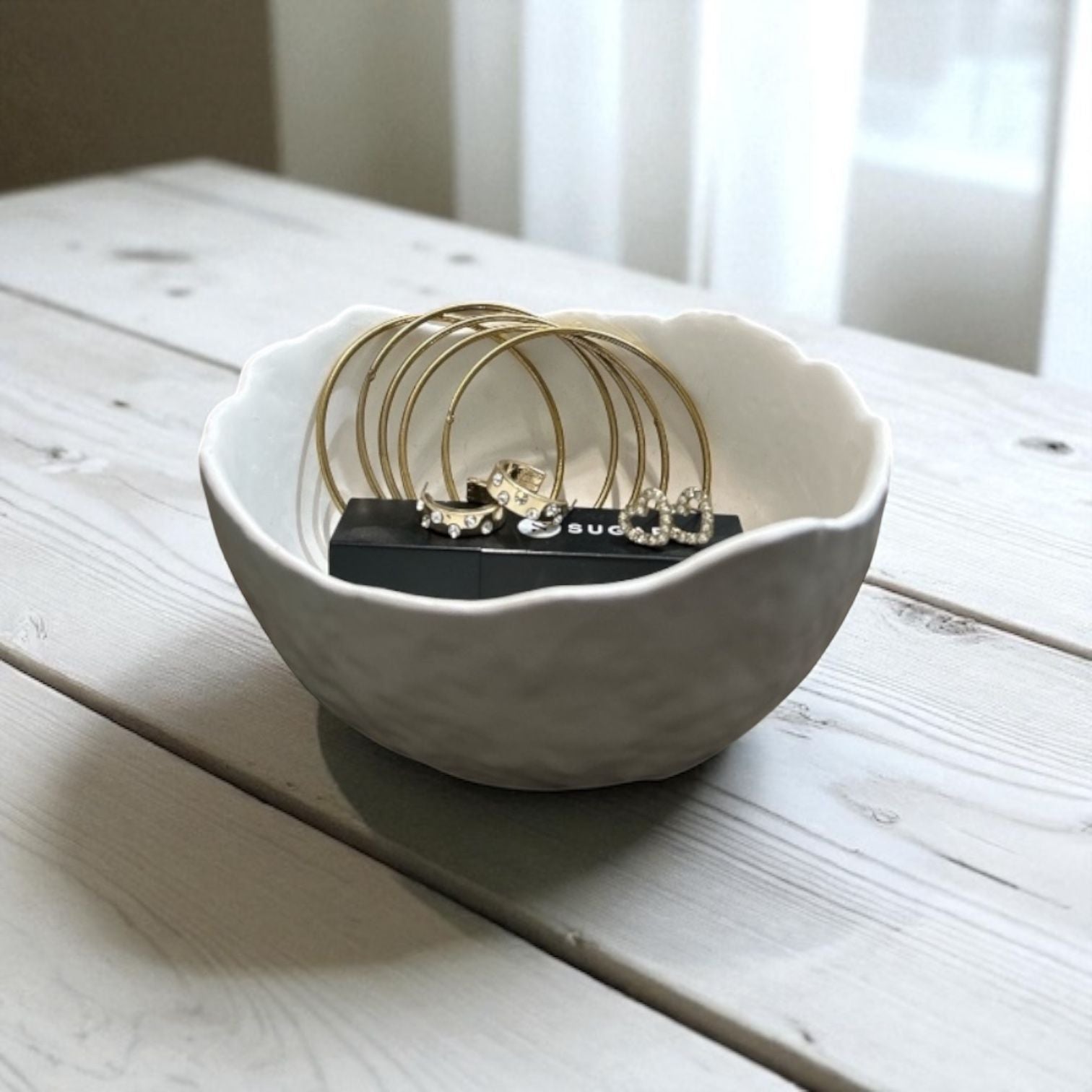 Unique Design: Elevate your space with our bowl design trinket, adding a delightful touch to your decor. The pearl white color beautifully complements all themes, making it a versatile addition to your home decor collection.