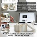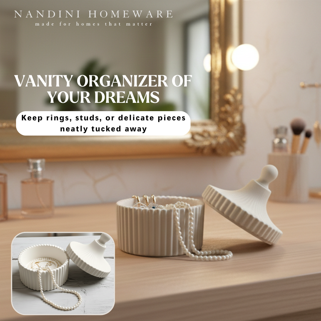 Modern Design: With its sleek ceramic-inspired design and stylish lid, this multifunctional container elevates the aesthetic of your bedroom, dressing table, or kitchen. It serves equally well as a decorative tray or an eye-catching accent piece in any space.