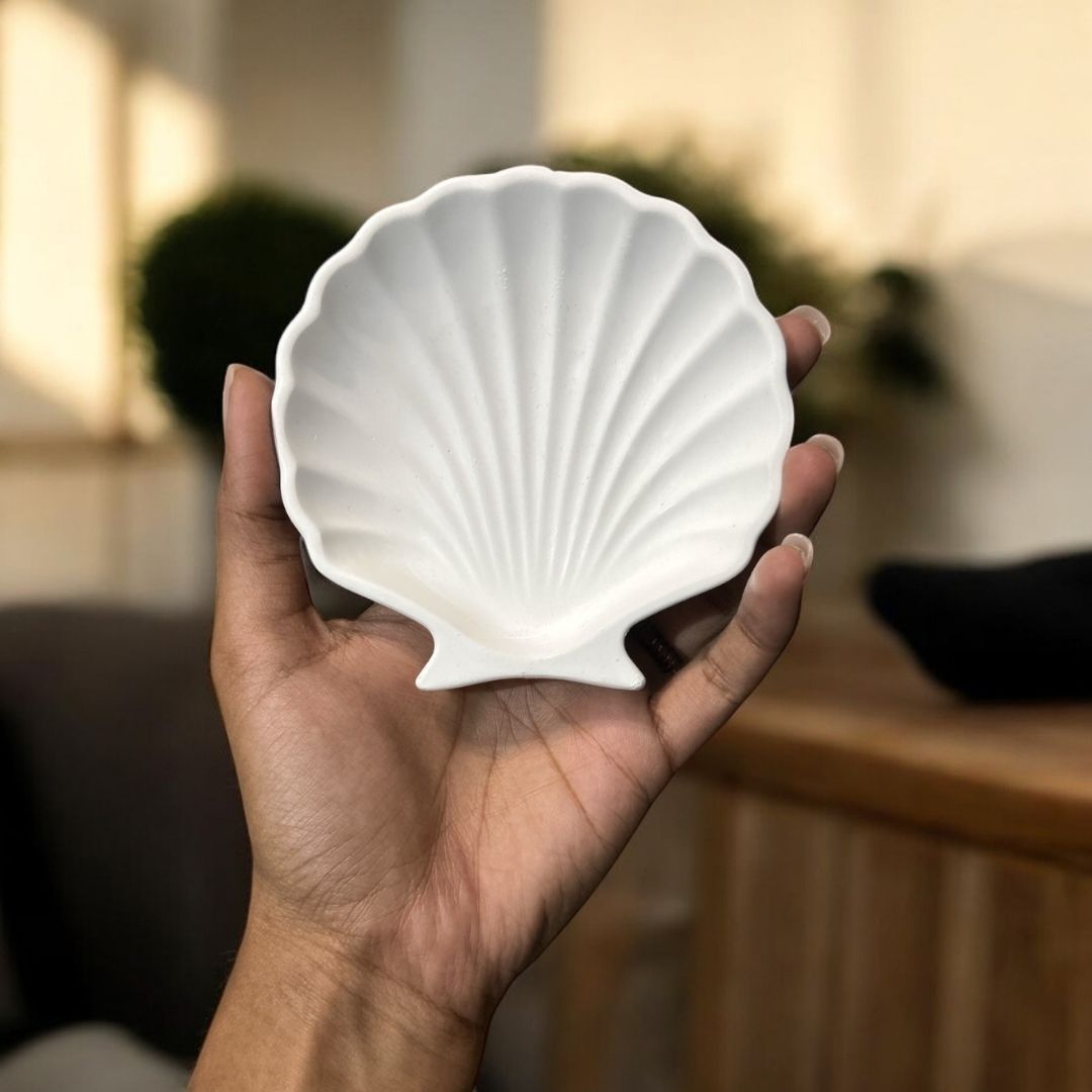 Concrete Shell Trinket Dish, 10.5x10.5x2 cm (50g)