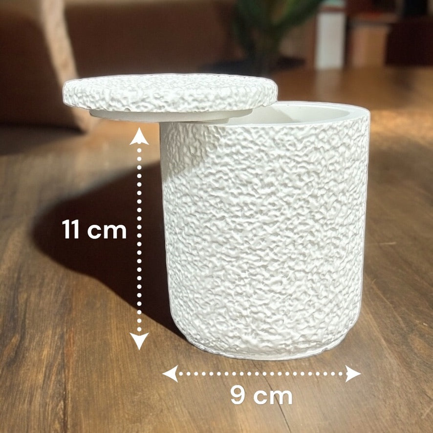 Material: Nandini Homeware jars are handcrafted from durable concrete, offering a unique texture and pattern that adds an artisanal charm to your home decor. Their sturdy build ensures long-term use while adding a subtle touch of elegance.