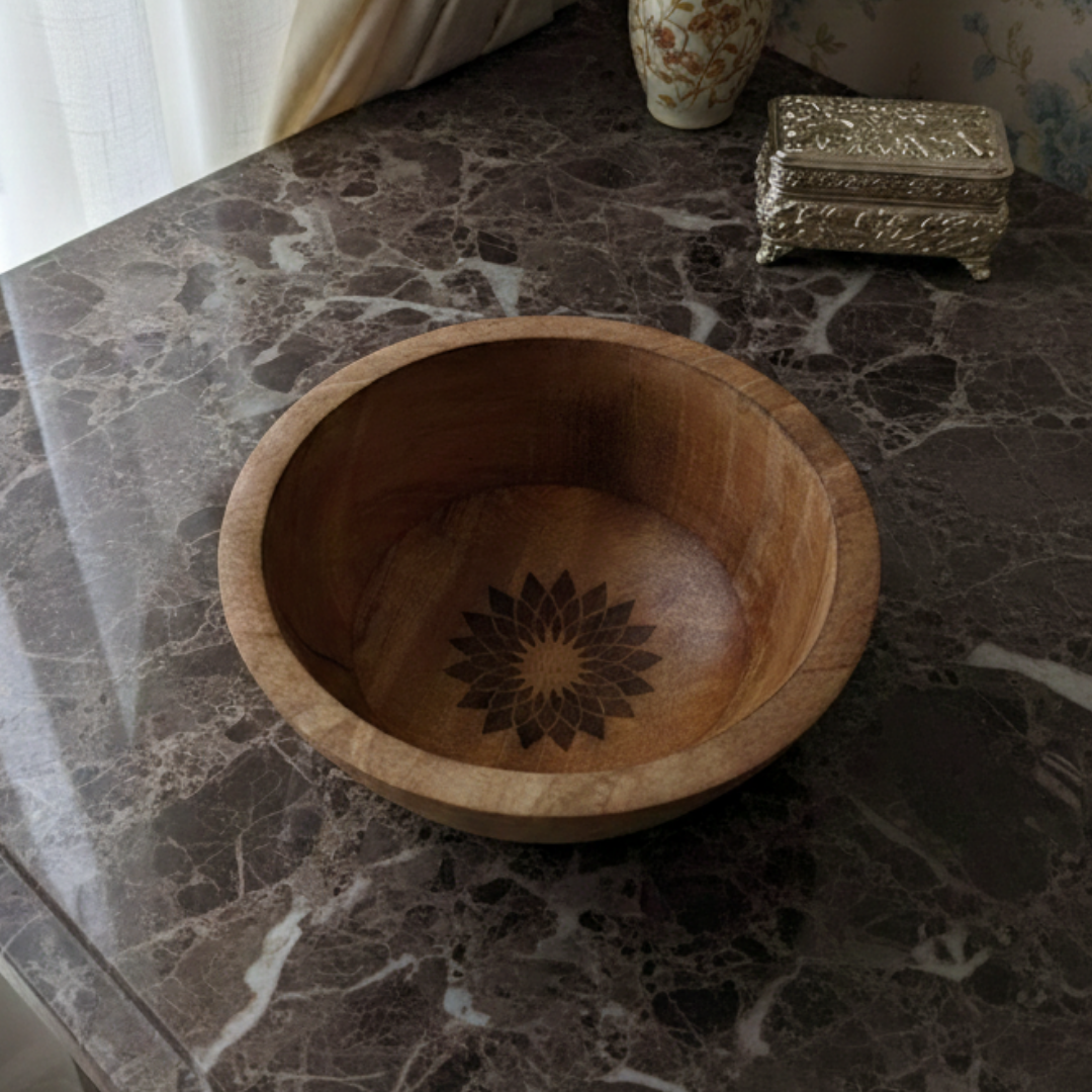 Wooden Floral Serving Bowl